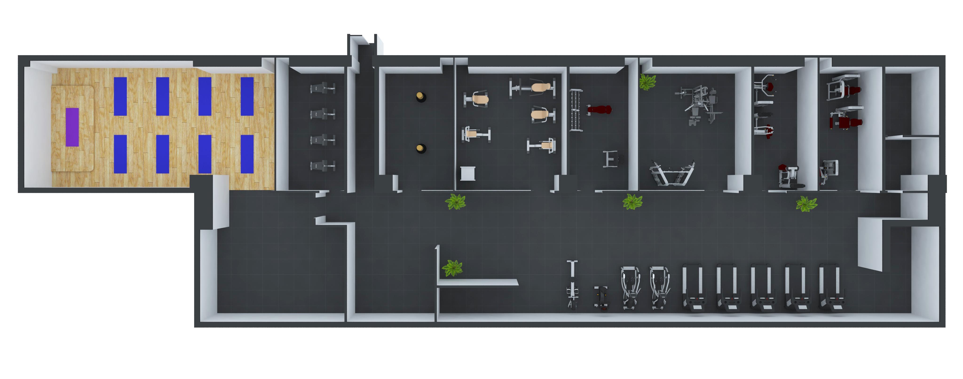 本次健身房器材項目的放置區域屬于不是大面積的擺放,而是一間一間的房屋進行擺放,那公司根據實際的情況對這家企業健身房提出了更為合理的搭配及布置圖。