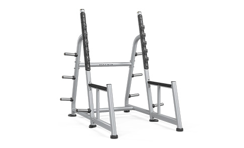 Magnum 深蹲架 具有多個裝架位置,可幫助用戶實現出色的運動靈活性。它配備八個鈴片存放角,為杠鈴片的存放提供了充足空間??蚣懿捎脤S须p涂層工藝,經久耐用。