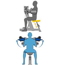 9、大小凸輪盤可以使得每個手臂所推的力量都是所選擇的選擇鐵的重量,坐墊可實現單手調節;
