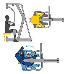 9、大小凸輪盤可以使得每個手臂所推的力量都是所選擇的選擇鐵的重量,坐墊可實現單手調節;